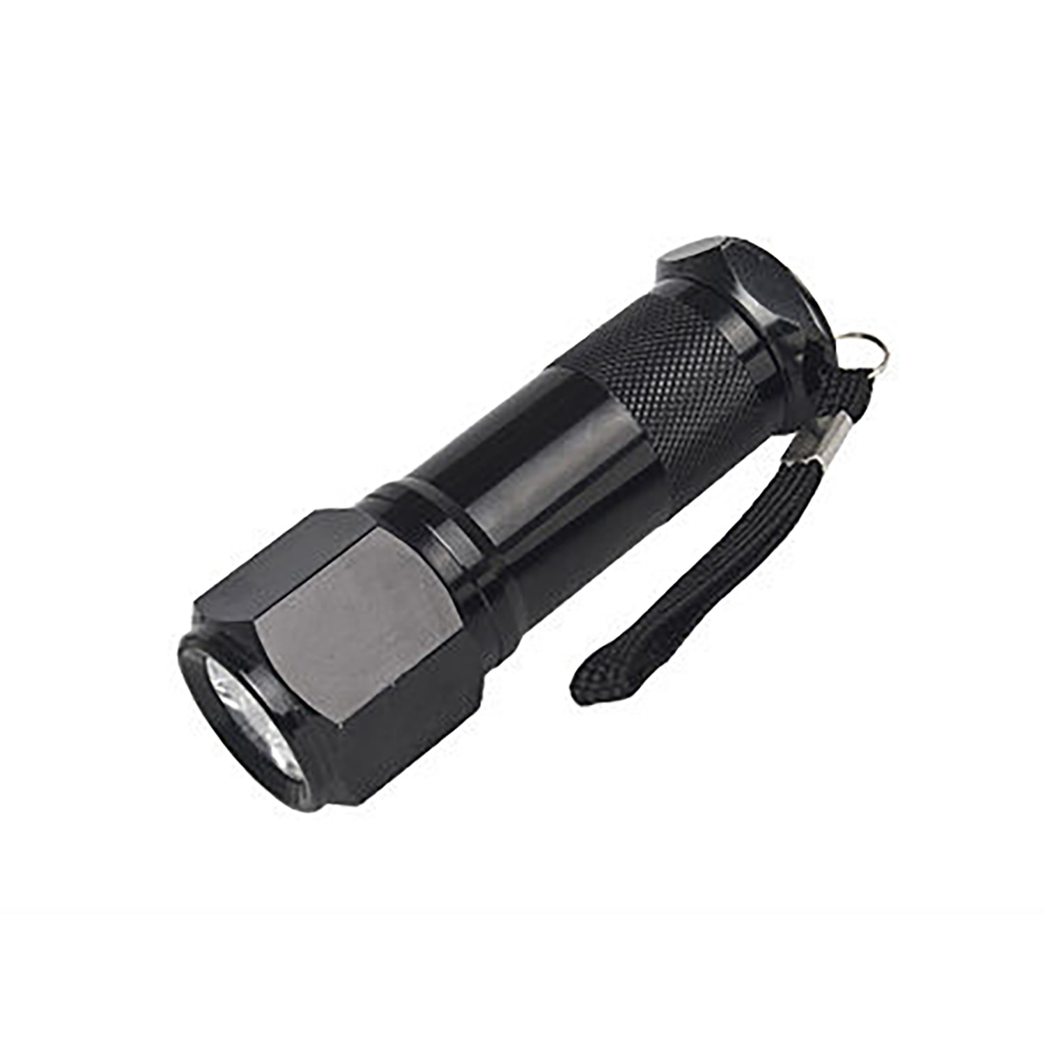 Here comes an aluminum LED flashlight with stout housing. A high lumen LED is installed for super bright illumination in darkness. A lanyard is attached at the back, allowing user to hang it onto any objects.