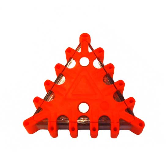 This LED flashlight boasts a unique and eye-catching design in a triangle shape with an orange cover. It features a robust plastic structure with exquisite details. The LED light source offers bright illumination with low energy consumption.