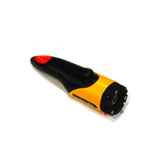 This LED flashlight features a durable structure in black and bright yellow. It is easy to control and comes with a clip for enhanced convenience. The flashlight adopts LEDs as the light source for high brightness.