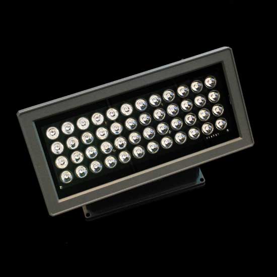 Showcased here is an LED floodlight fitted with a rugged aluminum housing. The high-power LED light sources are securely shielded by the tempered glass shade outside. This piece is also resistant against water and impact.
