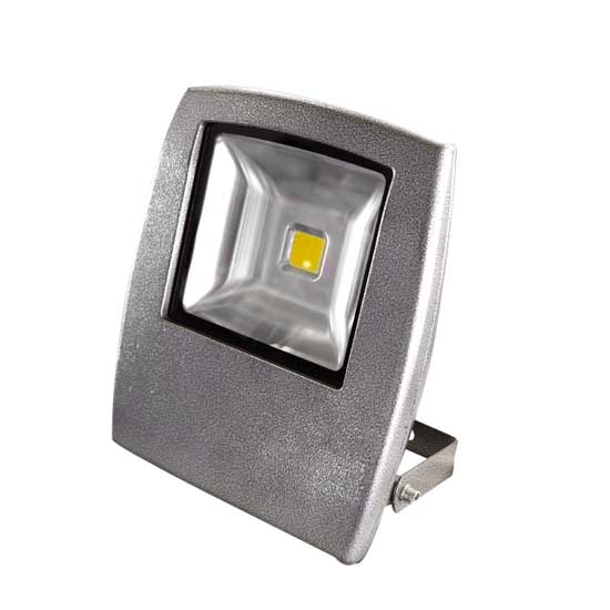This LED floodlight features a glossy silvery toned appearance for a stylish touch. The durable construction enables it to be used outdoors. This reliable LED floodlight is an energy saving choice for commercial lighting.