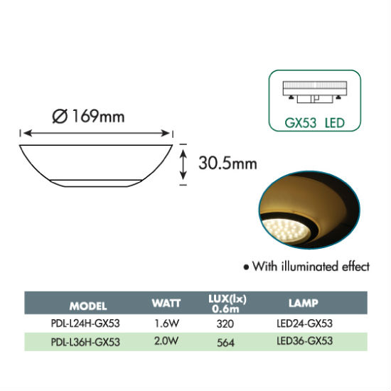 Avaliable for super bright version with 36 units LED (Model:PDL-L36H-GX53)