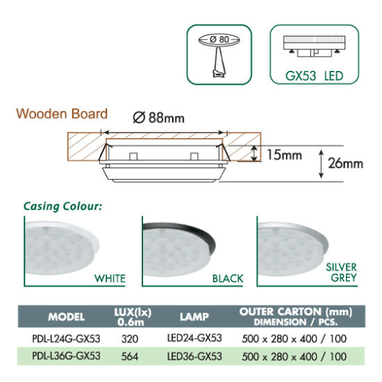 Avaliable for super bright version with 36 units LED (Model:PDL-L36G-GX53)