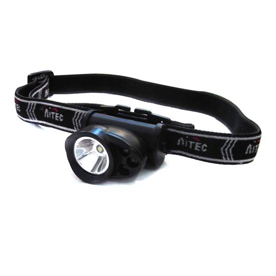 The featuring product is a LED head lamp for outdoor activities such as camping and picnicking. The lamp with plastic casing is attached with a head band which is adjustable in lenght.