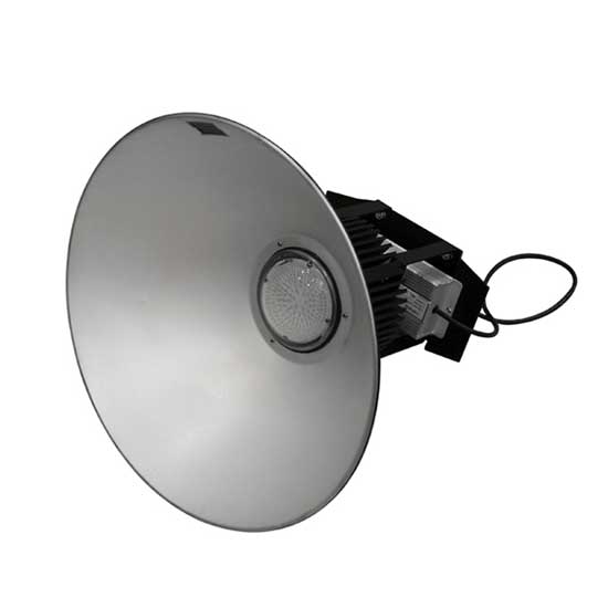 This LED high bay light features a die-cast aluminum reflector in a brushed finish. The quality LED high bay light boasts a high power factor and excellent color temperature. The versatile LED high bay light is a great lighting option for factories, warehouses, supermarkets, etc.