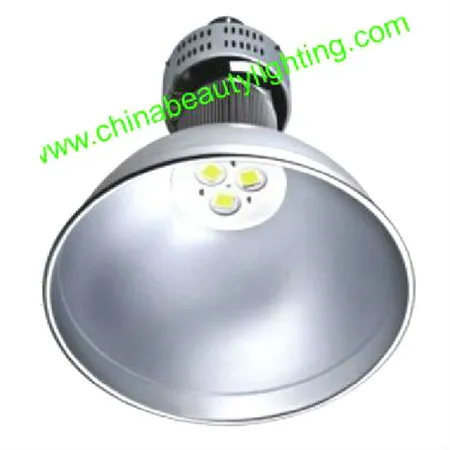 This LED high bay light has a die-casting aluminum housing and is equipped with American Bridgelux or Cree LEDs. It has a reflector to ensure even light distribution and can provide stable and bright illumination. With a hook on top for ceiling hanging, this LED high bay light is excellent for indoor areas like factories, warehouses, garages, etc.