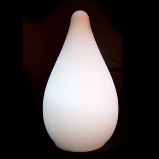 This is an LED lamp with a unique pear shape design. It has a flat base that allows it to sit steadily on tables. It comes with different colour, such as red, blue and white. It gives beautiful and colourful light when turned on.
