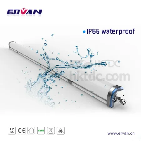 Featured here is a LED light with waterproof function. It comes in a round tube design and has mounting brackets on top for installation. This LED light can be suspended or ceiling mounted and is a bright and long lasting lighting choice.