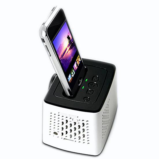 The LED mini projector features an iPhone and iPod docking for you to play the multimedia files, including music, movies and photos. The LCOS technology allows crisp images and vivid videos displayed on a screen sizes from 15" to 37". Update your entertainment gadget with this mini multimedia projector.