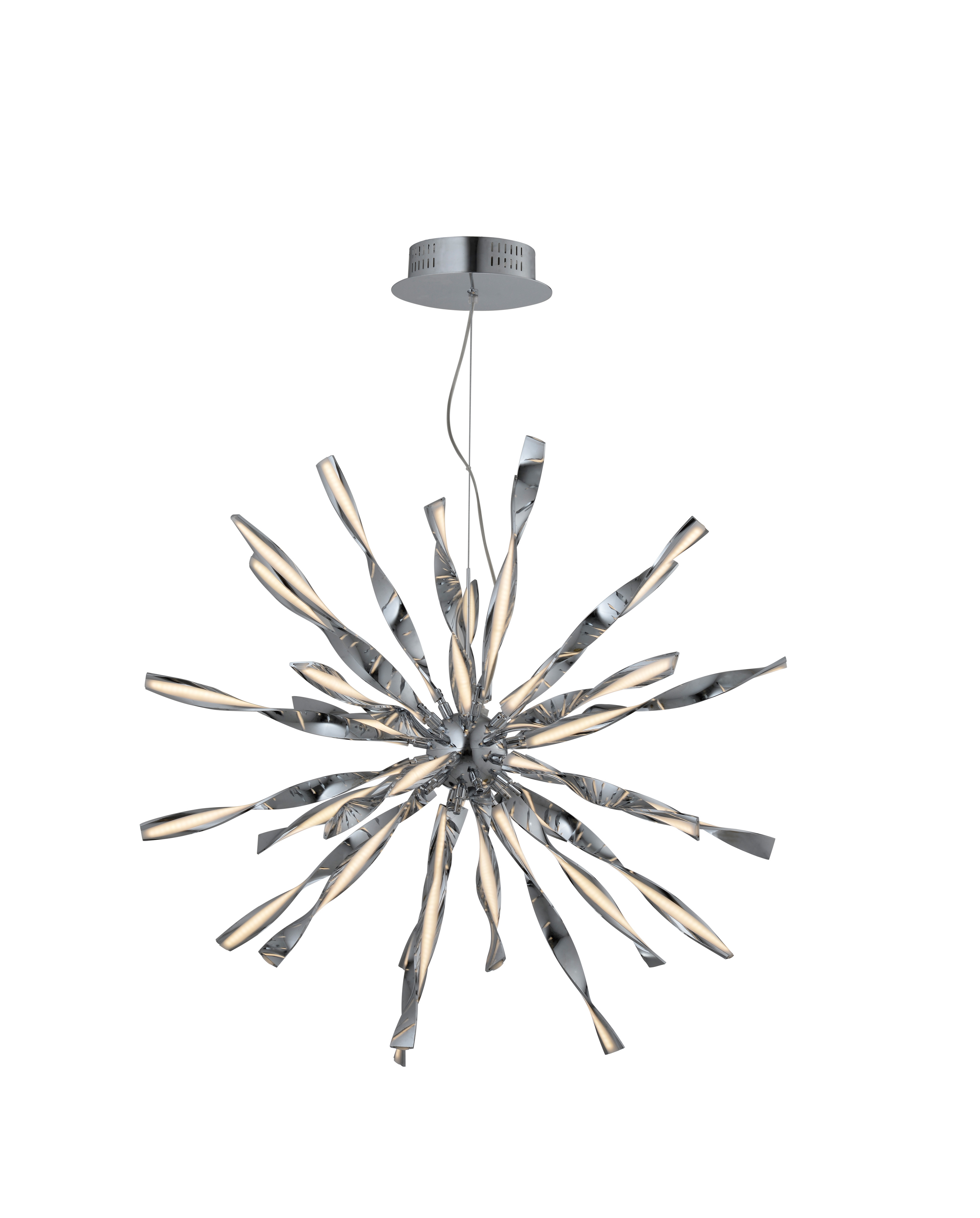 This unique LED pendant light adds an elegant touch to home or business spaces. It comes in a chrome structure which is corrosion-resistant and lightweight, so the pendant light is durable and safe to be hung. This chandelier glimmers beautifully with reflected light like a blooming firework.