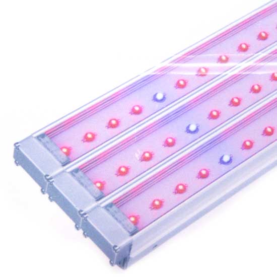 This LED panel light features a rectangular-shaped housing fitted with three rows of red and green LEDs. The functional LED plant light provides necessary light for plant growth. The LED plant light can be easily mounted on the ceiling.