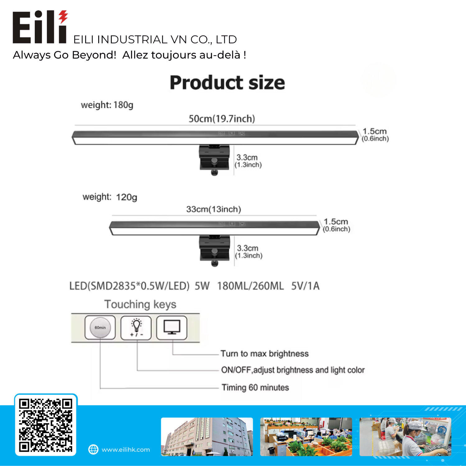The LED Screen Light Bar delivers soft, flicker-free lighting with three adjustable color temperatures (2945K, 4188K, 6281K). Featuring anti-glare and stepless dimming, it ensures eye comfort for long hours of work, study, or gaming. Compact, durable, and USB-powered, it’s designed for modern desks and multiple devices.