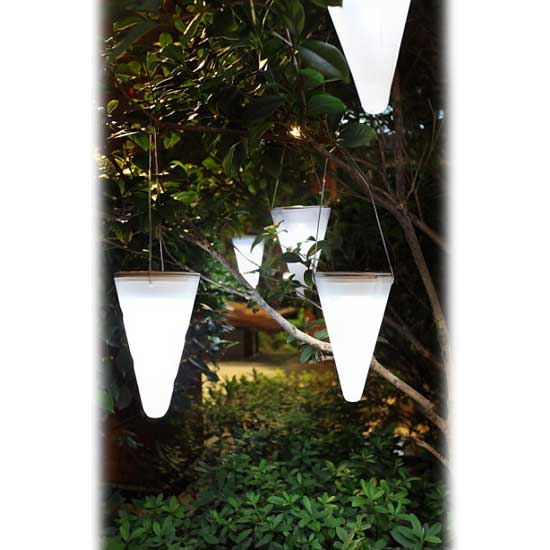 The displayed cornet-hanging lamp is available in 3 different shapes. It is designed with a monocrystalline solar panel on the top for turning sunlight into electrical power. This LED solar lamp will surely add a delicate accent to your Christmas trees.