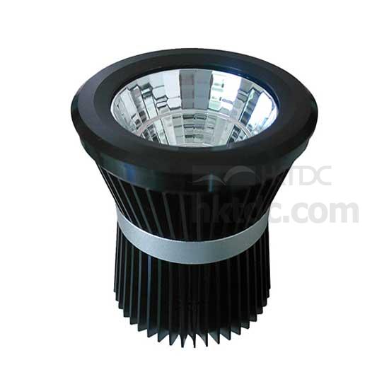 Displayed is an LED spotlight that is dimmable. Using high quality COB chips, this spotlight offers satisfactory and stable illumination with a high color rendering index. This energy saving spotlight is suitable for homes and public buildings.