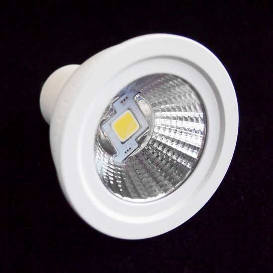 This is an LED spotlight bulb that only consumes 5 watts of energy and delivers excellent lighting efficiency. It is designed with a pure white housing for enhanced reliability. The light beams through the reflector are soft and comfortable for your eyes.