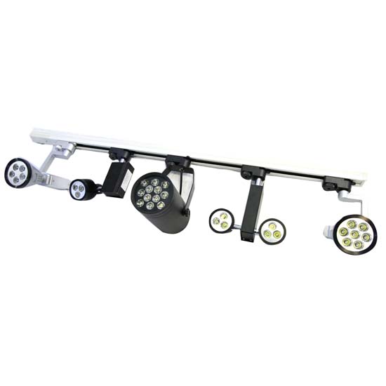 Featured here is a set LED stage light mounting on a track. They are finely made with reliable performance and high stability. These track lights are ideal for any stage performance.