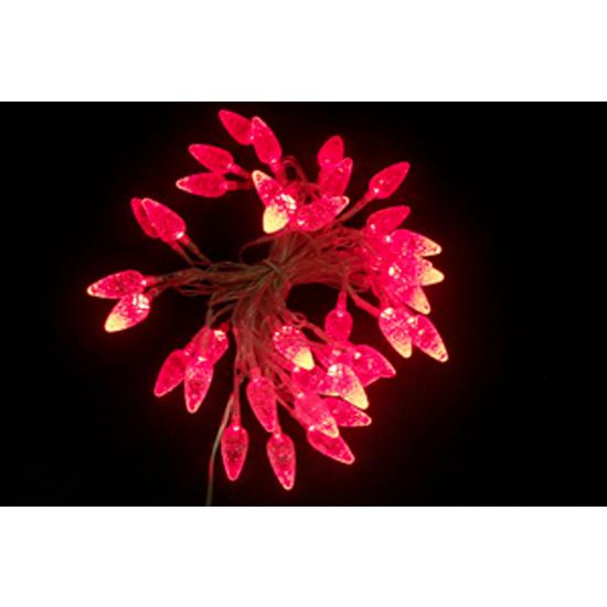 Displayed is a LED strawberry light in bright red color. With a cute strawberry design, this 24V LED light rope can be applied outdoor as decorative lighting.