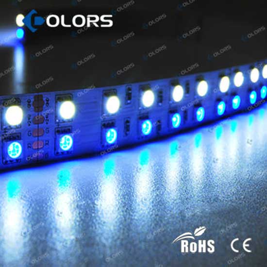Photographed is an LED strip designed with two columns of LEDs in different colors. The rugged construction promises lasting durability with resistance to corrosion. This LED strip provides high flexibility for different commercial lighting applications.