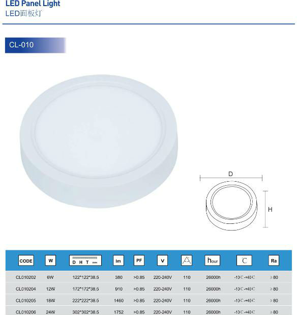 6w 122*122*38.5mm; 12w 172*172*38.5mm; 18w 222*222*38.5mm 24w 302*302*38.5mm