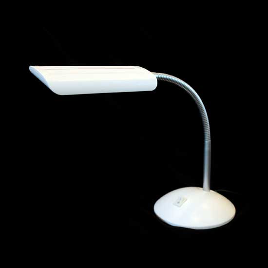 This stylish LED table lamp features a white ABS housing with a flexible metal goose neck. The top-quality LED table lamp diffuses soft and comfortable light without flicker and glare. It makes a functional addition to your home and office.