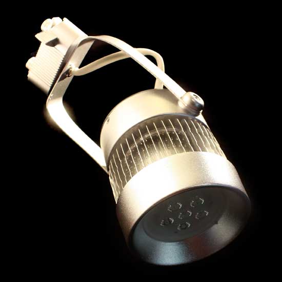 As shown is an LED track light which can cast concentrated light over an area. This piece can emit superior brightness with reduced power consumption. The light is also completed with a sturdy housing in the elegant gold tone.
