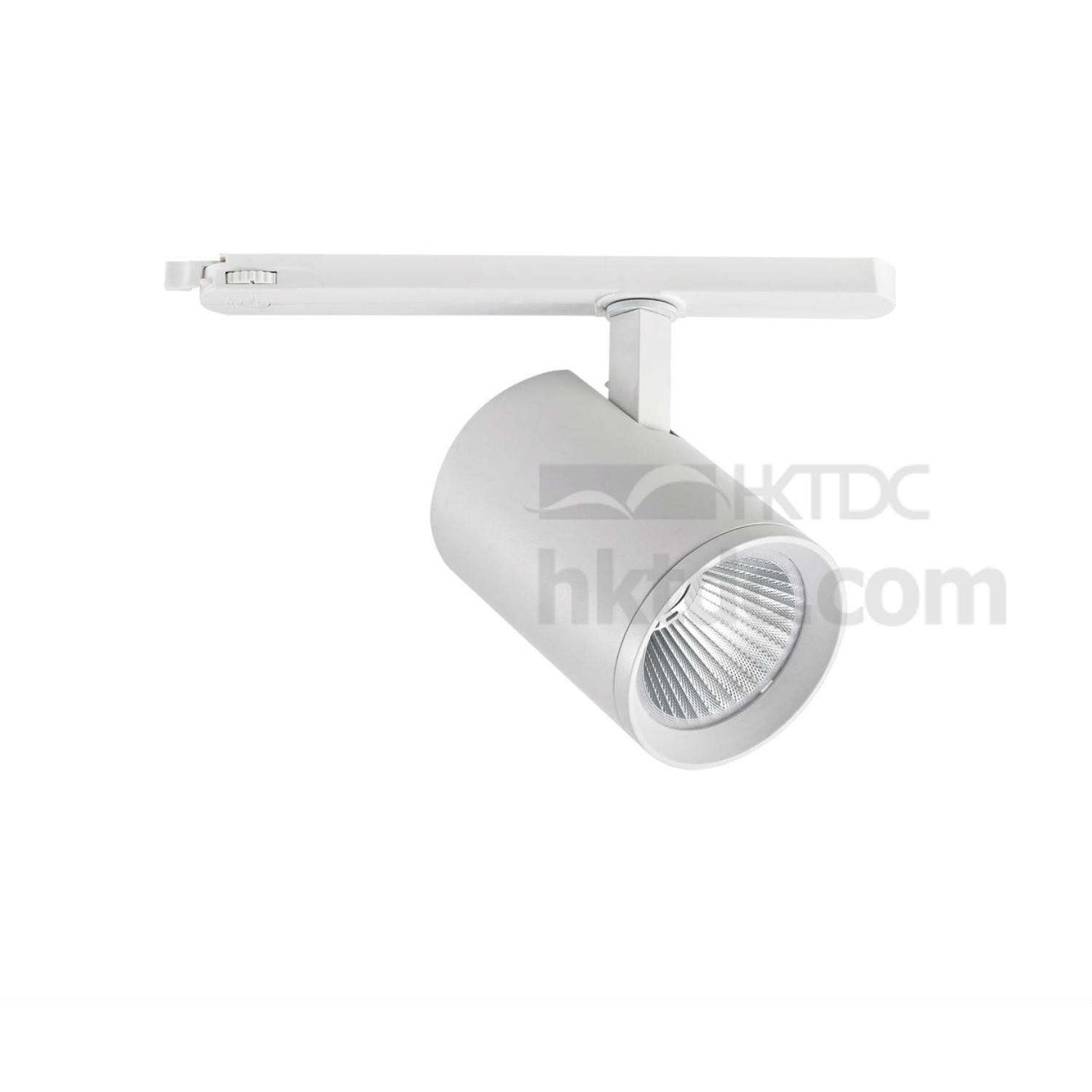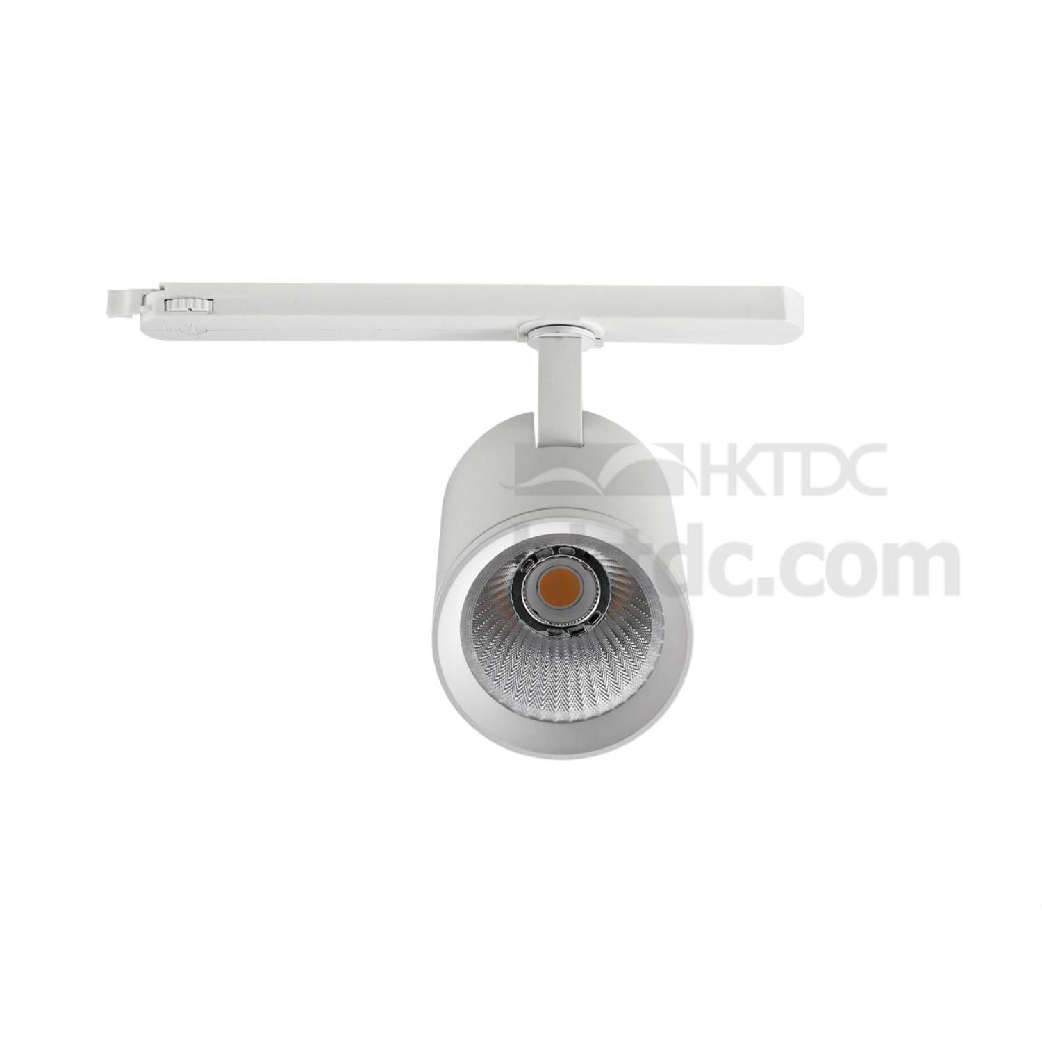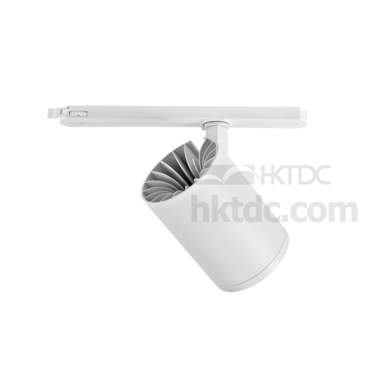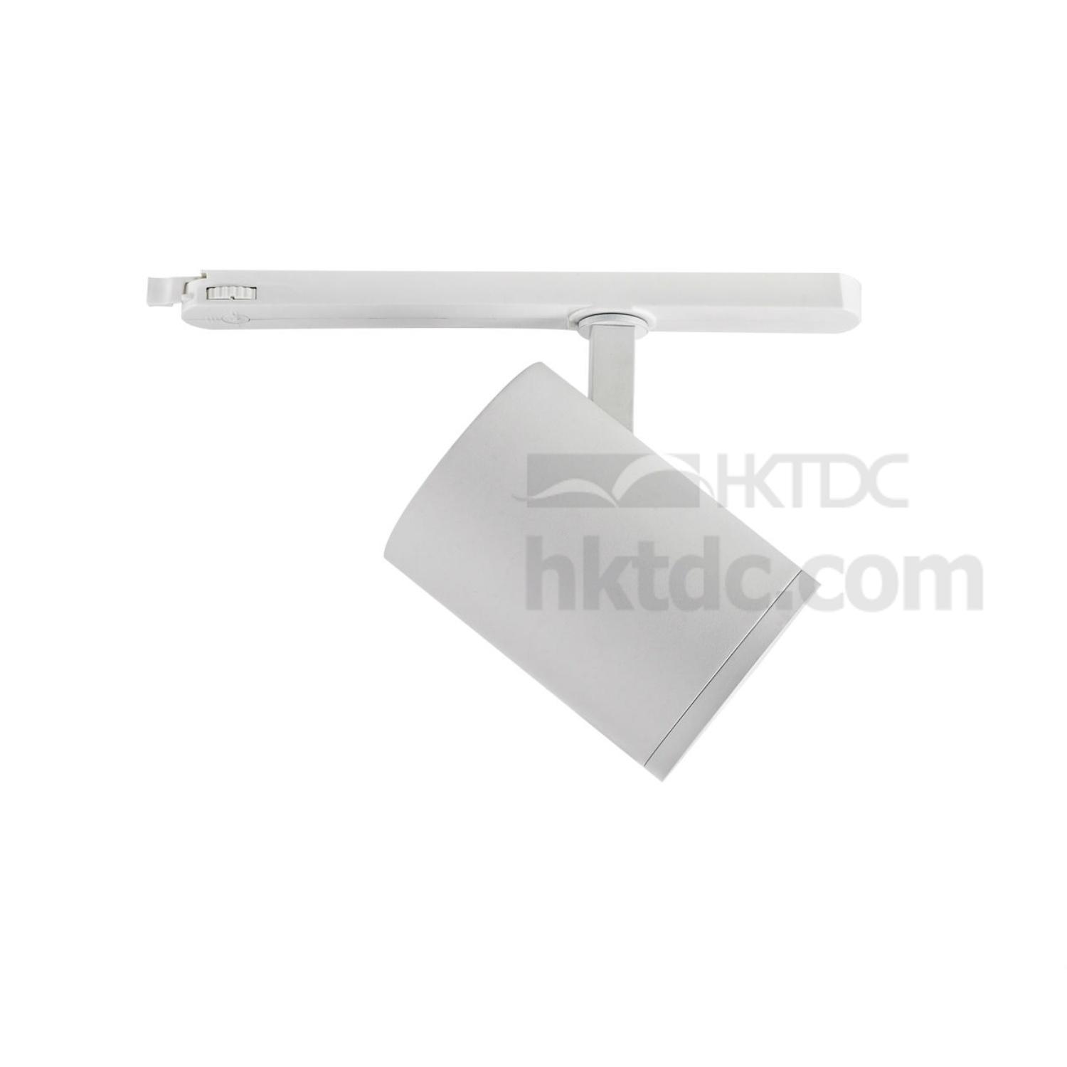 - A light-colored and cylinder-shaped LED light matched to a straight and slim track.