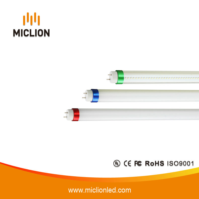 This LED tube light is equipped with multiple LED chips and can deliver bright and efficient lighting performance. It has a slim cylindrical housing made of aluminum and PC material and has a colored ring on the side. The LED tube light has a two-pin connector for easy installation and is excellent for general lighting applications.
