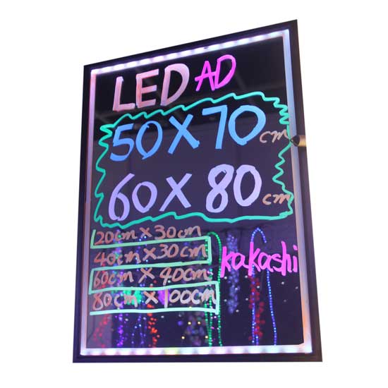 This rectangular writing board is fitted with high quality LEDs for brightness as well as saving energy. There are different sizes available for your selection. This high performance LED writing board is ideal for various shops.