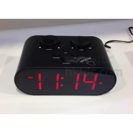 Functions: 12/24Hr time, alarm, snooze, LED display brightness control, volume control, one USB charging.