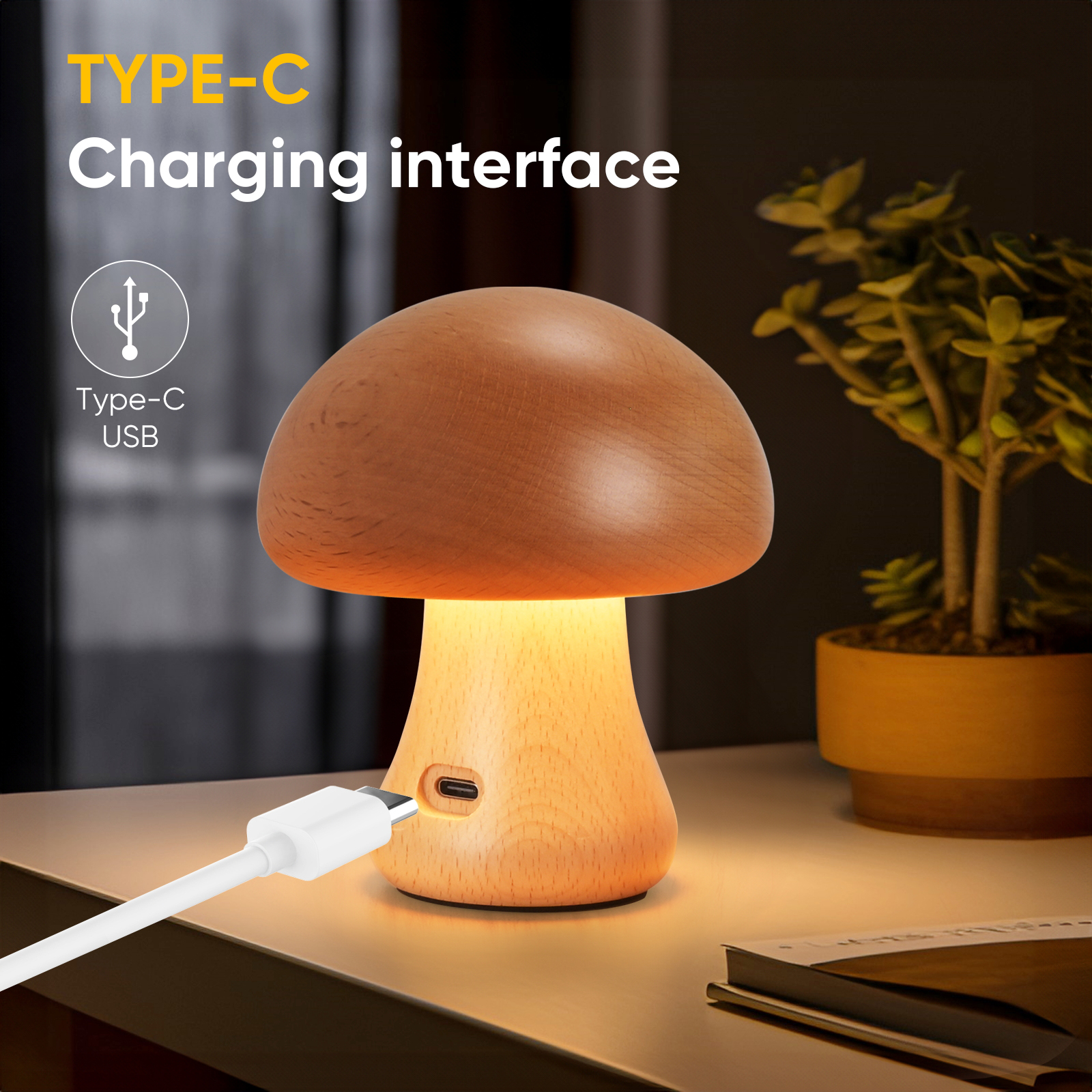 LED rechargeable mushroom table lamp