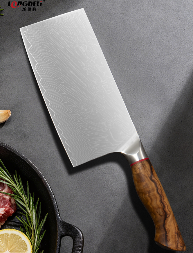 LONGDELI CARBONIZED WOOD CLASSIC DAMASCUS PROFESSIONAL CHEF'S KNIFE BLADE LENGTH: 180MM | THICKNESS: 2.0MM MATERIAL: 67-LAYER DAMASCUS STEEL | HARDNESS: 60 HRC | PERFORMANCE FAR SURPASSES ORDINARY KNIVES EXCLUSIVELY MADE FOR PROFESSIONAL CHEFS – LONG LASTING SHARPNESS, ACCURATELY MEETS THE CUTTING REQUIREMENTS OF VARIOUS KITCHEN INGREDIENTS CARBONIZED WOOD HANDLE – NATURALLY ANTI CORROSION AND MILDEW-PROOF, GREEN AND ENVIRONMENTALLY FRIENDLY