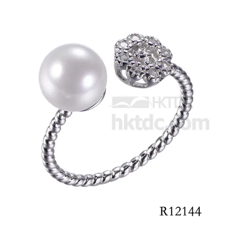Lab Created Pearl and Cubic Zircons Adjustable Silver Ring