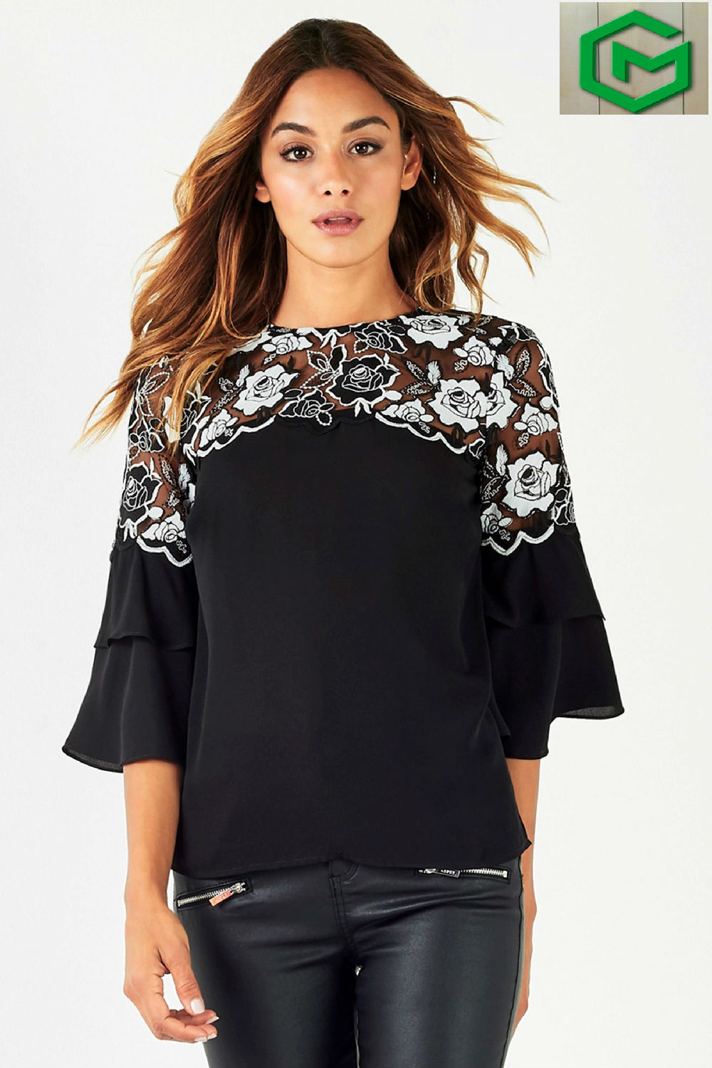 Lace frill sleeve top, It is perfect for throwing on a pair of jeans or skirt for that classy look!