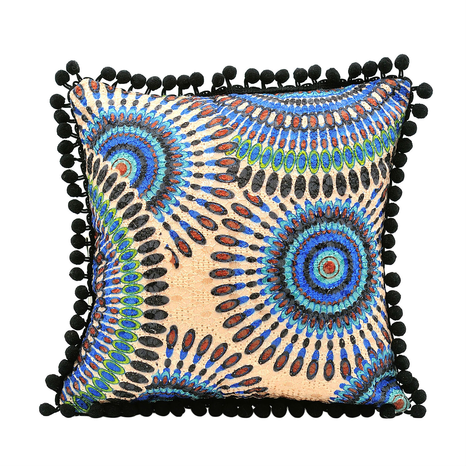 Bursting with texture, our floral cushion has a bold, colourful flower design against a subtle lace swirl pattern. Displaying a bold yet simple flower design in gradient shades, our lace cushion will effortlessly add a cheerful appeal to your decor.