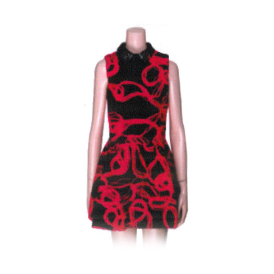 This sleeveless lace dress is ideal for fashionable ladies. It is designed in bright red and black for an eye-catching look. The collar comes with dazzling stones for added elegance.
