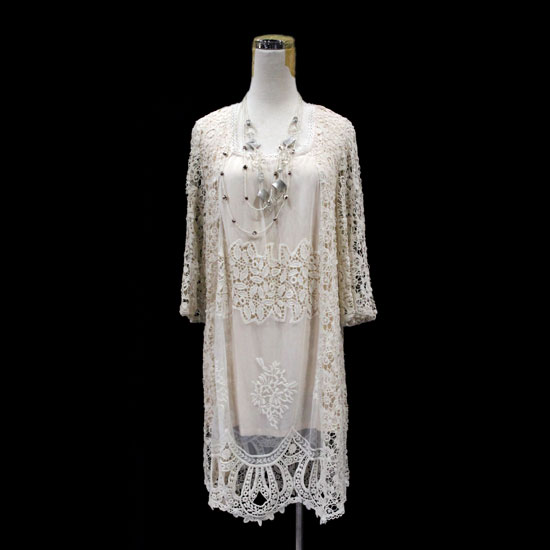 This fabulous summer tunic dress is adorned with luxurious lace detail. The layered design adds a flowy touch to the garment. The square-neck, mid sleeved cutting flatters many ladies.
