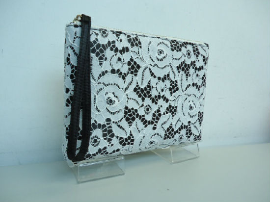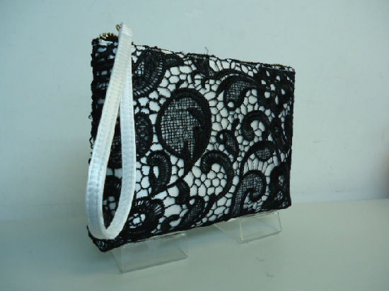 Top gold teeth nylon zipper for the closure, the zipper puller is wristlet. The wristlet make with satin.