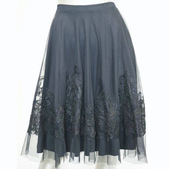 The elegant three-quarter-length skirt comes with an A-line design and a fully-draped body. It features a unique double-layer style which the outer layer is made of see-through chiffon with delicate lace embroidery. It is finely tailored with an exquisite fabric that promises gratifying comfort for wearing.