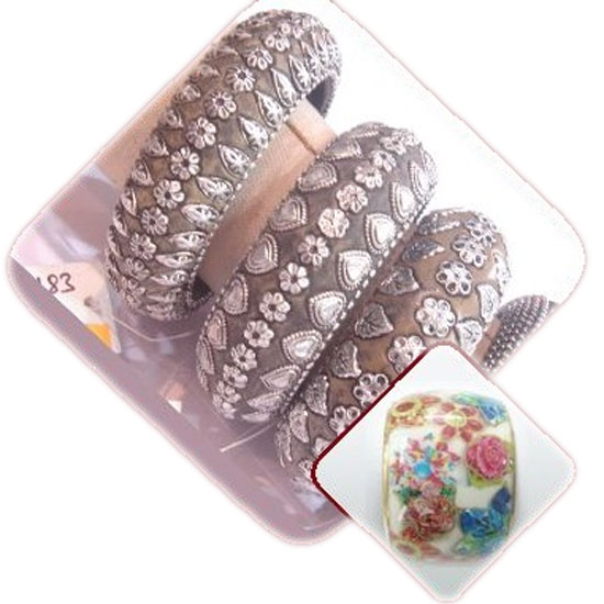This is a series of bangles designed in a vintage style. The bangle features a wooden structure embellished with brass adornments. The brass details are finely crafted in heart and floral shapes to please ladies’ eyes.