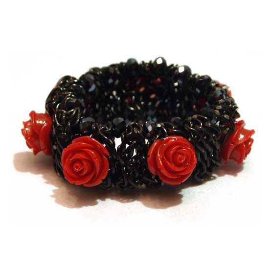 Give your beloved one a little surprise with this ingenious bangle. This ladies’ bracelet boasts a black delicate structure adorned with glittering crystals in the same hue. The glamorous red roses jazz up the entire exterior with an aura of femininity.