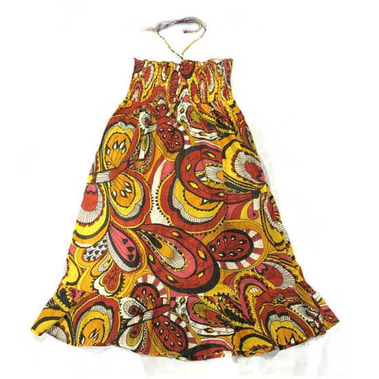 The ladies' beach dress showcases a tube style with over-the-neck straps. The multi-colored abstract patterns add a decorative touch. Hit the beach this summer in this bright-colored dress.