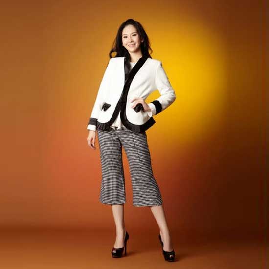 This is a ladies blazer and pants set that is made of extremely soft and comfortable material. The elegant blazer features smooth fabric trimming in black from the collar to the skirt. Featuring a classic black-and-white plaid design, this pair of pants features a loose design for a comfortable fit to wearers.