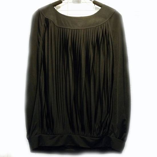 This stylish long-sleeved blouse features pleated detailing, which creates an illusion of length and camouflages any figure flaws. The generous cutting and the banded hem and cuffs form a slightly puffy silhouette that adds just the right touch of contemporary elegance. The modest jewel neckline gives you the most sophisticated look. This blouse is a versatile piece that suits most occasions.