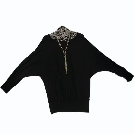 The ladies' blouse flaunts bat-wing sleeves for a touch of modernity. The banded hem ensures a perfect fit. The trimmed neckline makes it stand above the rest.
