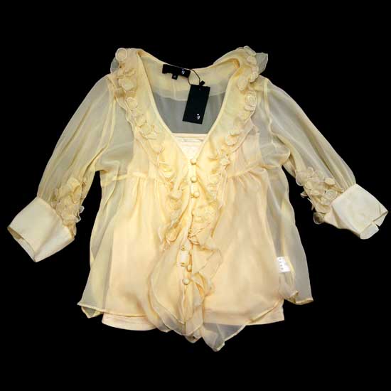 This ladies’ blouse is available in a light champagne color. The blouse is made with a pure blend of silk to offer a smooth touch on the skin. The ruffled details add to the blouse’s femininity.