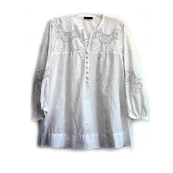 The blouse offers satisfying comfort with full cotton construction. It features delicately crafted lace for a touch of style. Its brief solid white design also makes it an easy match.