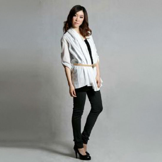 Presented here is a blouse made for ladies. A thin belt helps define your waistline. This ladies’ blouse is easy to mix and match.