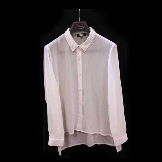 This attractive blouse spotlights a soft and comfortable polyester construction. The shimmering pearls on the straight point collar create a distinctive look. The long sleeves and single-breasted button front complete this stylish blouse.