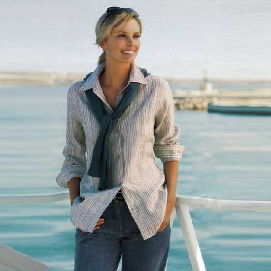 This ladies’ blouse features a classic striped pattern. It comes with a spread collar, long sleeves and a button closure. Made of linen, this stylish blouse promises optimum wearing comfort.