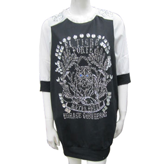 This is a ladies’ blouse that is fully paved with shimmering resin stones for an appealing look. It is designed with a classic round neckline and mid-length sleeves. This fashionable blouse is an ideal addition to complete ladies’ wardrobes.